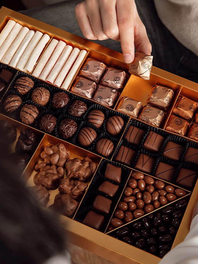 Harem Chocolate olarak 25 yıldır zengin içerikli, yenilikçi ve lüks çikolatalar üretiyor. Üretimdeki ustalığını tamamlaması adına daima en kaliteli çikolata ve en taze içeriklerin arayışında. Misafirlerine sevdikleriyle paylaştıkları özel anlarda veya yeni lezzetler keşfetmek istediklerinde, onlara gurme tadımının eşsiz deneyimini sunmak istiyor. Onun için çikolata üretimi ve sunumu bir coşku, tutku ve duygu meselesidir.