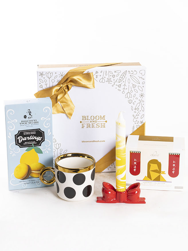Birbirinden özel ve içerisinde çikolatadan kahve çekirdeğine, french press'ten mug'a kadar çeşitli ürünler olan butik hediye kutuları Bloom & Fresh'te.
